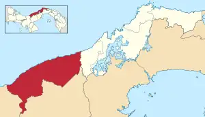 Donoso District is a district (distrito) of Colón Province in Panama. The population according to the 2000 census was 9,671;[2] the latest official estimate (for 2019) is 14,798.[1] The district, while lies along the Caribbean coast in the west of the province, covers a total area of 1,826 km². The capital lies at the town of Miguel de la Borda.[2]