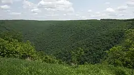 ![]() A vista seen from the Donut Hole Trail, south of Hyner Run State Park. | |