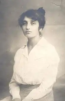 Dora Gabe was the daughter of Peter Gabe, an immigrant from Russia, who became the first Jew to be elected to the Bulgarian National Assembly. When he was barred from taking office, he turned to journalism and became a well known public figure in Bulgaria.[3] Dora attended high school in Varna, and then pursued a degree in Natural Sciences at Sofia University (1904). Later, she studied French Philology in Geneva and Grenoble (1905–1906). She taught French in Dobrich (1907).