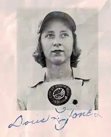 Doris Jones (born 1924) was a member of the All-American Girls Professional Baseball League (AAGPBL). She was born in Sellersburg, Indiana. In 1945, she played for the South Bend Blue Sox, in South Bend, Indiana.[1] Doris only played for one season and was simultaneously enrolled at Georgetown College, majoring in Art. Her ambition was to become a professional cartoonist.[2]