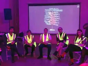Cypis has developed several public programs in Los Angeles, many involving communities and law enforcement. In 2014, after partnering with the Los Angeles Department of Human Relations to gain understanding of chronic community conflict, she co-founded North East Youth Council (NEYC) to build leadership skills for at-risk-youth, develop community projects, and improve relations with police.[5][13] She has partnered with Days of Dialogue – The Future of Policing since 2015 as dialogue facilitator and has designed numerous forums on race and identity.[13][69] In 2018, Cypis founded the platform PeoplesLab – transforming conflict into possibility, which employs somatic, perceptual, psychological and procedural communication skills-training to engage conflict and develop capacity for creative social-justice change.[12][13] She presented One Another, an interactive presentation exploring strategies for intimate engagement across difference, in 2019 at NAVEL in Los Angeles.