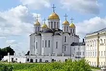 The Dormition Cathedral, also known as the Assumption Cathedral (Russian: Собор Успения Пресвятой Богородицы, romanized: Sobor Uspeniya Presvyatoy Bogoroditsy), is a Russian Orthodox church in Vladimir, Russia. It is regarded as the mother church of Russia through the 13th century.[1] It is part of a World Heritage Site, the White Monuments of Vladimir and Suzdal.