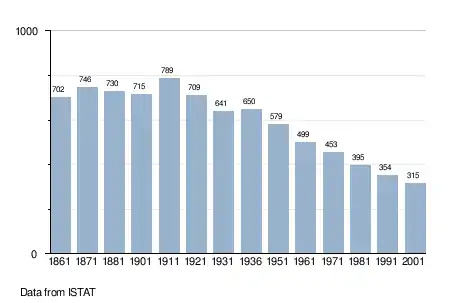 - "Superficie di Comuni Province e Regioni italiane al 9 ottobre 2011". Italian National Institute of Statistics. Retrieved 16 March 2019.