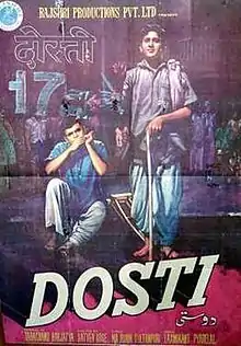 Dosti (transl. Friendship) is a 1964 Indian Hindi-language drama film directed by Satyen Bose, produced by Tarachand Barjatya, and distributed by Rajshri Productions. The film focuses on the friendship between two boys: one blind and the other physically disabled. The film features Sudhir Kumar Sawant and Sushil Kumar Somaya, and also starred Indian actor Sanjay Khan.[2]