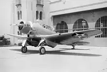 The design of the initial version began in 1935. It was powered by a 700 hp (520 kW; 710 PS) Pratt and Whitney XR-1535-66 double row air-cooled radial engine and had hydraulically actuated perforated split flaps (dive brakes), and main landing gear that retracted backwards into fairing "trousers" beneath the wings.[1] The perforated flaps were invented to eliminate tail buffeting during diving maneuvers.[1]