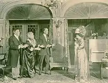 Wood made his Broadway acting debut in the revival of a pair of plays being produced at the Garden Theatre: Cyrano de Bergerac and Beau Brummell.[2][3] Over the next thirty years he appeared in dozens of plays on The Great White Way.[4] He was in the original production of Du Barry, written, directed, and produced by David Belasco, which had a successful run in 1901–02.[5] After appearing in several plays with short runs, he was in another successful play from 1904 to 1905, The College Widow, written by George Ade and directed by George Marion again at the Garden Theatre.[6] In 1910 he appeared in the role of Marc Antony in a repertory production of Julius Caesar at the Garden.[7] In 1913 he began a successful run of The Family Cupboard, by the Pulitzer Prize-winning playwright, Owen Davis, which ran until 1915.[8] He starred in the musical Maytime, produced by Lee and J.J. Shubert, and written by Rida Johnson Young, who also wrote the words to music composed by Sigmund Romberg. The show ran for almost 500 performances at five theaters from 1917 to 1918.[9] He followed this with another Young hit, Little Old New York, which ran during 1920 and 1921 at Plymouth Theatre.[10] Other hits Wood appeared in included: Give and Take (1923), written by Aaron Hoffman;[11] the 1924 John Henry Mears' production, Sweet Seventeen;[12] the 1927 musical, Bye, Bye, Bonnie, which was also notable as the first Broadway role for Ruby Keeler;[13] and The Good Fairy (1931–32), produced and directed by Gilbert Miller, and performed in the theater named after Miller's father, which also starred Helen Hayes.[14] After another successful run in the musical-comedy Take a Chance at the Apollo Theatre which ran from 1932 to 1933, and starred Ethel Merman,[15] Wood took a 25-year hiatus from the Broadway stage,[4] and devoted his creative talents to Hollywood.[16]