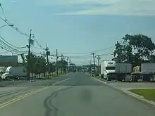 The alignment of Dowd Avenue originates as the name of Humboldt Avenue and the designation of New Jersey Route 164. Route 164 was first designated just after the 1953 state highway renumbering, as the highway was not listed as a creation of the renumbering from its original system.[3] Although the maps produced by Rand McNally never showed Route 164 after 1955, the highway was in logs produced by the state of New Jersey past 1957.[4] Route 164 was decommissioned by the New Jersey State Highway Department by the 1969 milepost log.[5] In 1982, the new freeway to Newark Airport (New Jersey Route 81), which parallels the former alignment of Route 164, opened.[6]