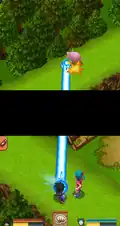 The game, for the most part, is presented in a 3/4 overhead perspective with elements similar to The Legend of Zelda: Phantom Hourglass.[4] Players take full advantage of the stylus and touchscreen capabilities by journeying through each level battling enemies, solving puzzles and collecting power-ups, health items, and various Zeni Bags. Although Goku's movements are controlled by the stylus, they're not limited to it as players can still use the directional button.[5] Over the course of the game players will learn new techniques to battle enemies with. Players can use their Skill Points to upgrade their levels to improve combat performance.[6]