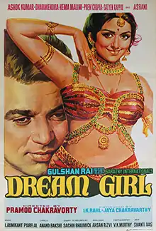 Dream Girl is a 1977 Hindi film, directed by Pramod Chakravorty. The movie stars Hema Malini, Ashok Kumar, Dharmendra and Prem Chopra. Hema Malini was promoted as the Dream Girl from her first film and that eventually led her to star in this film.[1][2][3]