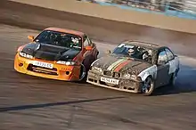 There is some regional variation. For example, in Australia, the chase car is judged on how accurately it emulates the drift of the lead car, as opposed to being judged on its own merit — this is only taken into consideration by the judges if the lead car is on the appropriate racing line.[10] Other variations of the tansō/tsuisō and the tansō-only method is multi-car group judging, seen in Drift Tengoku videos where the four-car team is judged in groups.[11]