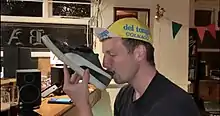 In 2015, after Supercars driver David Reynolds won the first non-endurance race of his career, he proceeded to drink champagne from his shoe while celebrating on the podium.[8] Also in 2015, DJ Dillon Francis did a shoey on stage at Sydney's Field Day. More international media attention was received in 2016 after MotoGP rider Jack Miller celebrated his first win and drank champagne from his racing boot during the podium presentation.[9][10] Following a podium at the 2016 San Marino MotoGP round, Italian racer Valentino Rossi was the first non-Australian competitor to embrace and perform a shoey.[7]