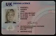 ![]() Example of a driving licence issued in Northern Ireland after December 2021 | |