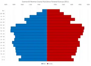 At the 2011 census, ethnic Croats formed the vast majority with 94.4% of the population, followed by Serbs at 1.7% and 3.9% being other ethnic groups combined.[6]