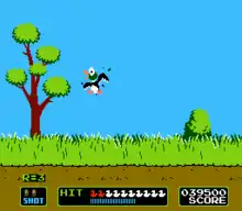 After every second round, a bonus stage has ducks flying out of the grass with the hunting dog occasionally jumping into the line of fire as a distraction. If shot, the dog scolds the player and the bonus stage ends. According to Nintendo of America employee Jerry Momoda, the dog was made impossible to shoot on console releases to make the game more family friendly.[16]:45–46