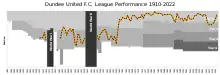 United were eliminated in the third qualification round by AZ Alkmaar after a 7–1 aggregate defeat, losing 7–0 away from home, equaling the record defeat for a Scottish club in European competition.[20] They started the league season equally poorly, and were beaten 9–0 at home by Celtic on 28 August 2022.[21] United continued to play poorly throughout the season, leading to the departure of two managers as the club faced an unexpected relegation battle. The first was Jack Ross, who was appointed as manager before the season[22] - he was sacked after the 9-0 loss to Celtic.[23] Ross was succeeded by Liam Fox, first on an interim basis and then as full-time head coach after a win against Livingston in the League Cup.[24] Fox was in charge of the club until February where after a horror show against fellow relegation rivals Ross County United lost 4–0, resulting in the second managerial departure in the same season.[25] The club turned to Jim Goodwin, who had himself been relieved from his role at Aberdeen in February, to save their season, appointing him on a short term deal until the end of the Premiership season.[26] Goodwin led the club from being 5 points adrift at the foot of the table, and without a win in the league since January to losing only twice in seven matches, to 4 points above bottom side Ross County in the table into 10th ahead of Kilmarnock in 11th on goal difference.[27] United entered the split knowing that a couple more victories would all but secure their top-flight status for another season but became only the second side to go a post-split campaign without picking up a single point and were consigned to relegation back to the Championship after a 3–2 loss away at Motherwell on the final day.[28]