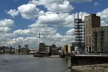 Dundee Wharf is a residential development in Limehouse in the London Borough of Tower Hamlets in London. The modern buildings occupy the site of a former shipyard known as Limekiln Dockyard. John Graves established this shipyard in 1633 and then expanded his holdings with Dundee Wharf itself.[1] By 1650 George Margetts developed a ropemaking yard including a ropehouse, storehouse and a ropewalk on the site.[1] A modern wharf with electric cranes was constructed in the 1930s. This was used by the Dundee, Perth & London Shipping Company to operate a twice-weekly service between Perth, Dundee, Leith and London.