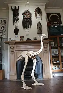 Described as "David Lynch meets David Attenborough",[3] the museum exhibits "biological curiosities, ethnological art and unusual cultural artefacts". Some of the exhibits are memorials to people, including Mahalski's father, physician E. R. Nye.[2] They include the bones of many different species of animal (including humans), 200 skulls, pinned butterfly collections, vintage books (especially medical texts), and ephemera.[2][5] On display is a hippo skull, and a giraffe skull sourced from a game park after the animal was culled (no animals were killed for the purposes of exhibition).[6]