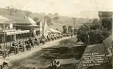 The plan and street pattern of 1838 gave Dungog generous sized lots that, over the years, have allowed people to build homes with ample space in between, as well as to enjoy cow and horse paddocks close by. [12] Before the 1920s there was relatively little building beyond Lord St. John Wilson, born in Dungog in 1854, described the town as a 'sea of bush and scrub, with a house here and there', and with bullock teams and drays having 'to wend their way between stumps and saplings'. Even in 1892, at the opening of Dungog Cottage Hospital on Hospital Hill to the west, the trek up was largely through open countryside.