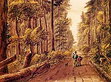 Beginning on June 5, 1799, the road was extended eastwards. Danforth was hired once more, and tasked with clearing a 10-metre (33 ft) road east from York through the bush, with 5 metres (16 ft) (preferably in the centre) cut to the ground. It was carved as far as Port Hope by December,[24] and to the Trent River soon after. Danforth's inspector and acting surveyor general William Chewett declared the road "good" for use in the dead of winter, but "impassible" during the wet summers, when the path turned to a bottomless mud pit. He went on to suggest that rather than setting aside land for government officials which would never be occupied, the land be divided into 200 acres (81 ha) lots for settlers who could then be tasked with statute labour to maintain the path.[24] Danforth agreed, but the province insisted otherwise and only four settlers took up residence along the road between Toronto and Port Hope;[25] like many other paths of the day, it became a quagmire.[26]