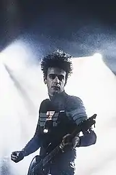 Tired of playing their old material, Soda had already begun working on new music towards the tailend of the Gira Animal tour, after a brief pause in touring. Cerati said, "We made the decision to distance ourselves a little, to do other things, to open our heads a little bit, to travel and to get together when it was right. That's how it was."[5] On top of Cerati's aforementioned influences coming into songwriting sessions, Soda also grew interested in alternative rock, impressed by the works of British shoegazing and dream pop bands such as My Bloody Valentine, Ultra Vivid Scene, Sonic Youth, Ride, Primal Scream, Spiritualized, and Lush.[6][7] Immediately following the culmination of the tour in May 1992 by way of six shows in Spain, Soda Stereo began work on a new album, tentatively titled Gol, but renamed Dynamo after Melero made a comment about old bicycles having dynamos.[8][5] Two of the three songs composed exclusively by Cerati, "En remolinos" and "Primavera 0", had allegedly already been written by the time the group returned to Buenos Aires.[5] According to Cerati, much of the album's material was composed in jams and rehearsals, with the audio recorded in stereo and saved onto DAT's.[5] Other songs, such as "Texturas", were based on old songs from the band's beginnings.[9][6] Eventually, Cerati states, "twenty-something" songs were written for the album.[5] Many of the rejects for Dynamo ended up on other albums; the song "Rombos", from Cerati's solo album "Amor Amarillo" (1993), was first written by Cerati for Dynamo, and documentary footage by Boy Olmi taken from the recording sessions shows Cerati playing the song to Bosio on his MPC.[10] Other songs, such as "Zona de promesas",[11] "Ángel eléctrico", and "Planeador", ended up on subsequent Soda projects.