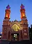 The Mukhtarov Mosque, built in 1906, dominates the city. In Vladikavkaz, there is a guyed TV mast, 198 meters (650 ft) tall, built in 1961, which has six crossbars with gangways in two levels running from the mast structure to the guys.