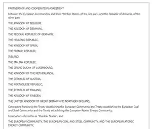 | Partnership and Cooperation Agreement between the European Communities and their Member States, of the one part, and the Republic of Armenia, of the other part | |