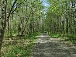 The Accotink Trail runs through Eakin Community Park and traces the path of Accotink Creek. This mixed-use trail is used by hikers and bicyclists.[3] It is paved in some parts and the rest is a gravel or stone dust surface. The trail is part of the larger Cross County Trail,[4] which runs north-south across Fairfax County from Great Falls, Virginia to the town of Occoquan, Virginia.