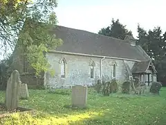The Church of England parish church of Saint Peter was built in the 14th century. It consists of a continuous nave and chancel with no chancel arch between them. The chancel masonry is ashlar, noticeably better-dressed and more evenly coursed than that of the nave. The church building includes a 12th-century Norman doorway re-used from an earlier church on the same site.[1] The font is tub-shaped, suggesting that it too is Norman. The chancel windows are Perpendicular Gothic. The east window has ogee tracery and includes 14th century stained glass.[1] The piscina also is ogeed. Beside the east window on the east wall are the remains of a medieval wall painting. The woodwork of the pulpit and reading desk are Jacobean items carved in the 17th century. The pulpit bears the date 1633 but Sherwood and Pevsner suggest that it was assembled in the 19th century from Jacobean materials.[1] St. Peter's is a Grade II* listed building.[2]