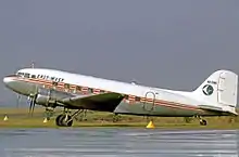 East-West acquired several Douglas DC-3s starting in 1953 and these 28-seat aircraft steadily replaced the smaller Avro Ansons in operating scheduled services throughout New South Wales. The last example was disposed in 1973 having latterly been operated on research flights into cloud seeding systems for the CSIRO.[2] In August 1953 East-West merged with South Coast Airways[3] although South Coast officially became a subsidiary company and continued under its own name until going into administration in 1965.