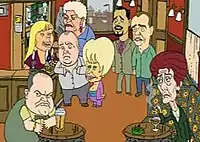 On April Fools' Day 2019, TheJournal.ie published a report on Prime Minister Theresa May's scheduled appearance on that night's special live episode of EastEnders, details of which had been leaked by Taoiseach Leo Varadkar overnight.[20] May's purpose was to issue a final plea for unity as Brexit entered a critical stage. The internet publication featured a photograph of May in The Queen Victoria pub, with the caption "Rehearsal shot of hostile locals witnessing May's arrival". It even went so far as to compose fake documents to back up its claim, including a draft script said to have been provided by the BBC to highlight the ever-changing difficulties of keeping up with political events as they rapidly unfolded: "'This is the 416th draft' the source said. 'And her appearance was only confirmed at the start of March. Brexit won't stop f*****g, c*****g changing every two seconds. It's driving the actors mad.'" A short video clip shows actor Adam Woodyatt (who portrays the character of Ian Beale) being comforted by colleague Steve McFadden (who portrays the character Phil Mitchell), as Woodyatt bursts into tears due to the protracted rehearsals. The preliminary script – which, TheJournal.ie reminded readers, was "contingent on what the hell happens in Brexit over the course of today" — had Dot Cotton (played by June Brown) gasping as Theresa May enters the pub. May, having begun her speech, is interrupted by Mick Carter (played by Danny Dyer) who knocks over a pint and a chair in his efforts to have the Prime Minister leave the pub. May departs and perches herself despondently on a park bench, whereupon Kat Slater (played by Jessie Wallace) approaches her with "Alright love? What's getting you down?" May tells Slater she has already blamed everyone – the Irish, the Democratic Unionist Party, the European Union — and is at a loss for who is left for her to find fault with now. Slater advises her to be honest. May finds solace in this, thanks Slater, remarks on the chilliness of the night and Slater hands the Prime Minister her leopard print jacket to put on. May returns to the pub and seemingly converts all the customers bar Dot Cotton, who is promptly ejected onto the street.[21]
