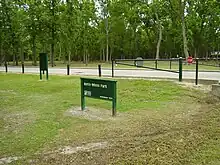 Crowley Park, operated by Harris County Precinct One, is located in East Aldine. It was named after W.E. "Bill" Crowley, who was the General Superintendent for Roads and Bridges for Precinct Four of the county. E.A. Squatty Lyons, who at one time served as the Harris County commissioner, wrote a letter dated April 14, 1977 requesting that the park be named after Crowley.[1][32] The park includes three baseball fields, a basketball pavilion, an exercise station, three parking lots, picnic tables spread throughout the park, three playgrounds, three sets of wings, tennis courts, toilet facilities, and a .5 mile jogging trail.[33]