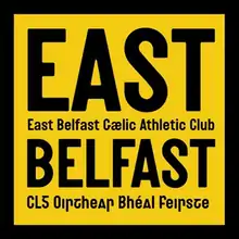 East Belfast GAA (Irish: CLG Oirthear Bhéal Feirste) is a Gaelic Athletic Association club located in east Belfast in County Down, Northern Ireland. The team currently plays in the Down Senior County League.[1][2] The team is noted for its cross community inclusion which differs from other GAA teams in Northern Ireland where the majority of followers are usually derived from the Nationalist community. East Belfast GAA have been a cross-community team since its inception with the inclusion of both Unionist and Nationalist personnel, and actively promotes friendship and cooperation between both sides of the political divide.[3] It is the first GAA club to be based in East Belfast since St Colmcille's was formed in the 1950s but folded at the beginnings of the Troubles.[4]