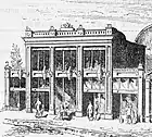 Melbourne's first theatre, the Pavilion, was constructed adjacent to the Eagle Tavern on Bourke Street in 1842.[2] The second theatre, the Queen's, was also constructed as part of a pub, however it was, and remains, the only major theatre in Melbourne's CBD built west of Elizabeth Street.[2]