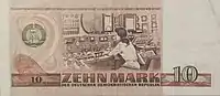 ![]() 10 Mark der DDR note, 1971 (front) ![]() 10 Mark der DDR note, 1971 (reverse) |