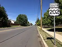U.S. Route 202 is the only numbered highway directly serving the township. It mostly follows Dekalb Pike along a northeast-southwest alignment across the southeastern portion of East Norriton. Southbound US 202 breaks off from Dekalb Pike to follow Johnson Highway along the border with Norristown for a short stretch before turning left into Norristown via Markley Street.