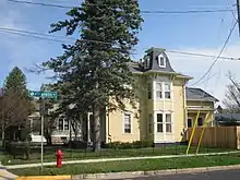 - The Bjoin house at 1001 E. Main Street is a 2-story Italianate-styled house built in the 1880s. The main block is clad in clapboard, with a wide frieze-board and brackets supporting the eaves. Above is a hipped roof with a central deck. A 3-story bay on the west side rises to a tower with a mansard roof. The front porch spans the most of the north side, decorated with spindlework and an elaborate cut-out frieze.[3][4]