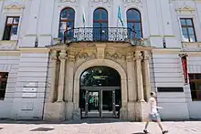 Since 1992 the Gallery has a seat in the building of the former County House. The building in a Baroque and Classicist style, designed by a Vienna-based builder, J. Langer, was completed in 1779. In the period of 1888-1889 the building underwent several alterations: the front part of the house was adjusted, courtly wings were added and the rear wing was modified. On the facade one can see the coat of arms of the Abaúj-Torna County of 1558. Upstairs, there is the assembly hall, the so-called historic hall, with illusive arcades showing the coat of arms of former Abaúj-Torna County as well as some of its towns and villages. It was here that the first cabinet meeting of the National Front of Czechs and Slovaks was held on April 5, 1945, which proclaimed the Košice government programme.