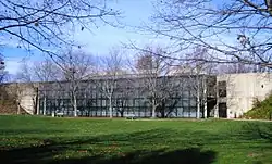Designed during the 1970s energy crisis and constructed in 1982, the township's municipal building was erected within a landscaped man-made hill, with only its south side exposed. The design allows the building to maintain a comfortable climate inside for most of the year, with greatly reduced energy needs.[58] The passive solar design allows the building to reduce energy consumption by 60% compared to conventional office buildings of the same size.[59]
