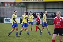 The club colours are yellow and blue, colours that represent the county of Sussex.[10] Away kits have changed over the seasons from white and blue, pink and light blue.