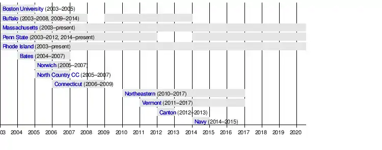 | Northeastern | 3 | 2011, 2012, 2013 | 2012 |
