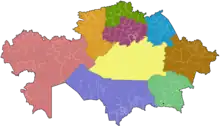 With the exception of the Eparchy of Astana and Almaty the eparchies are all contiguous territorially. The Eparchy of Astana and Almaty, however, covers two separate areas centered on the former and current capital cities of Kazakhstan.