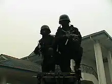 - The Tun Azizan, a auxiliary vessel (named in honour of the late Tun Azizan Zainul Abidin, former President of Petronas) which was converted into a sea base ship. It has a crew of 99 and is equipped with accommodation facilities, an operations and communication room, air conditioning, fresh water system and military equipment.[14] The Tun Azizan is placed five nautical miles from the Southern Philippines to intercept, with its quick reaction forces, criminals attempting to escape to the Philippines.