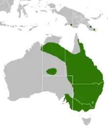 The eastern brown snake is found along the east coast of Australia, from Malanda in far north Queensland, along the coasts and inland ranges of Queensland, New South Wales, Victoria, and to the Yorke Peninsula in South Australia. Disjunct populations occur on the Barkly Tableland and the MacDonnell Ranges in the Northern Territory.[19] and the far east of the Kimberley in Western Australia,[34] and discontinuously in parts of New Guinea, specifically northern Milne Bay Province and Central Province in Papua New Guinea, and the Merauke region of Papua Province, in the Indonesian part of New Guinea.[20] It is common in southeastern Queensland between Ipswich and Beenleigh.[31]