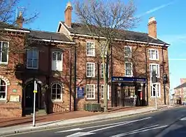 The town expanded rapidly during the Industrial Revolution, and in the 19th century it experienced the greatest increase in population density of any parish in Nottinghamshire.[7] By 1880 the population had increased to 4,500.[8] Factories were built to accommodate the new industries, land becoming available for them as the rural population moved to urban areas. This industrialisation of the countryside was only restricted from the early 19th century, when, somewhat belatedly, the effect of the Enclosures began to be felt in Nottinghamshire.[4] In a local manifestation of this period of upheaval, marchers of the Pentrich Revolution of 1817 passed through the town, and were met by soldiers at nearby Giltbrook: the residents of Eastwood boarded up their houses and hid in the woods.