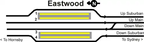 Eastwood railway station is located on the Main Northern line, serving the Sydney suburb of Eastwood. It is served by Sydney Trains T9 Northern Line.