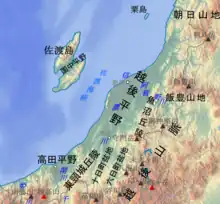 Echigo Plain (Japanese: 越後平野) or Niigata Plain (Japanese: 新潟平野) is an alluvial plain that extends from central to northern Niigata Prefecture in Japan.[1] The area of the plain is approximately 2000km2.[2] It is the largest rice-growing area in Japan.[3] The plain was formed by the Agano and Shinano rivers.[4][5]