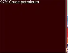 Exports in 2004 reached US$10,530,764,911. The vast majority of Angola's exports, 92% in 2004, are petroleum products. US$785 million worth of diamonds, 7.5% of exports, were sold abroad that year.[40] Nearly all of Angola's oil goes to the United States, 526 kbbl/d (83.6×103 m3/d) in 2006, making it the eighth largest supplier of oil to the United States, and to China, 477 kbbl/d (75.8×103 m3/d) in 2006. In the first quarter of 2008, Angola became the main exporter of oil to China.[41] The rest of its petroleum exports go to Europe and Latin America.[34] U.S. companies account for more than half the investment in Angola, with Chevron-Texaco leading the way. The U.S. exports industrial goods and services, primarily oilfield equipment, mining equipment, chemicals, aircraft, and food, to Angola, while principally importing petroleum. Trade between Angola and South Africa exceeded US$300 million in 2007.[42] From the 2000s, many Chinese have settled and started up businesses.[43]