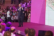In mid-December, Rama was criticised by NGOs, human rights organisations, and parts of the media of misusing the situation to pass controversial legislation after he sought a three-month extension for his state of emergency powers from parliament.[41] Rama tasked a group of fundraisers to manage the donations from the Albanian diaspora and to provide oversight for their usage.[48] Rama contacted and held discussions with some influential world leaders and countries asking for assistance and the creation of an international donors conference.[51][44][52][53][54][55] On 8 December, Rama was present at a Turkish donors conference for Albania that was organised and attended by President Erdogan.[56] In January 2020, Rama publicised preliminary figures on damage caused by the earthquake that totaled more than €1 billion.[57]