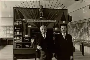 In 1908–1909, Volters made the first audio recordings of Lithuanian folk songs (including from the Lithuanian colony in Dzyatlava).[14] Some of the recordings were lost, but 113 wax phonograph cylinders with 165 works of folklore are preserved at the Berliner Phonogramm-Archiv (99 recordings) and the Institute of Lithuanian Literature and Folklore (14 recordings).[14] In expeditions to make the recordings, Volters had several assistants, including Augustinas Voldemaras, Kazimieras Būga, Vincas Krėvė-Mickevičius. The recorded songs reflected the variety of Lithuanian music at the time – not only the valuable archaic folk songs, but also church choir songs, songs of youth gatherings, or examples of instrumental music (skudučiai, dūdmaišis). Following Volters' example, Jonas Basanavičius acquired a phonograph and made further recordings in 1909–1912.[14] In 2012, 44 recordings by Volters were restored, transcribed, and published on a CD by the Institute of Lithuanian Literature and Folklore.[15]