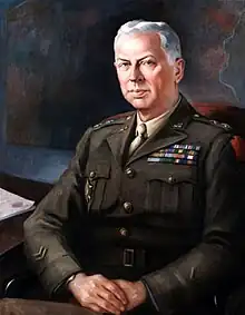 On July 29, 1920, Martin was promoted to colonel in the Pennsylvania National Guard, and became the first post-war commander of the 110th Infantry Regiment, 28th Division, a position he held from that date until August 17, 1922.[6][7] On December 15, 1922, Martin was promoted to brigadier general and assumed command of the 55th Infantry Brigade, 28th Division.[8][9] On June 26, 1939, he became a major general and commander of the 28th Division.[10][11] After the United States entered World War II, Major General Martin was retired on April 1, 1942, because of Army regulations concerning over-age officers.